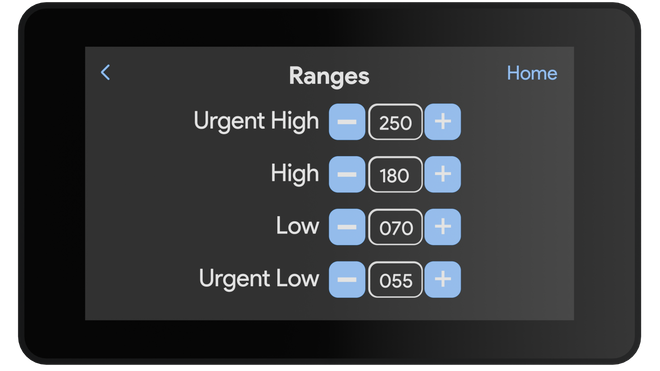 Set the glucose thresholds that define when values are considered in range, out of range, or urgent.