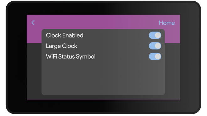 Lets you show or hide the clock and Wi-Fi symbol, and adjust the clock size between large and small.